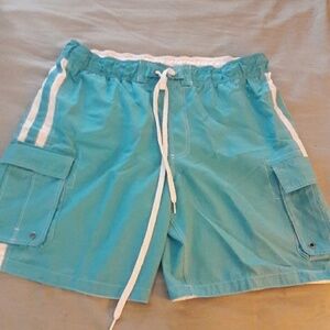 These awesome Mossimo Swimming Trucks are aqua blue and white. Extra large. Fully-lined. In great, gently-used condition.