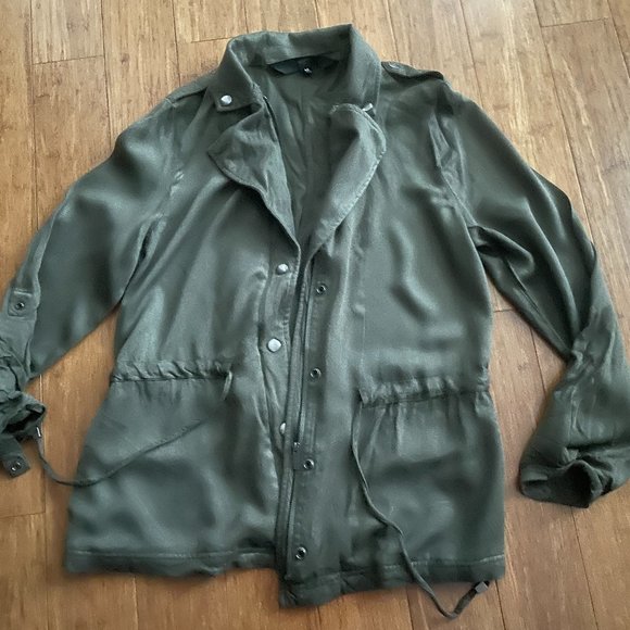 MOSSIMO WOMENS OLIVE JACKET COATS SZ M ZIP FRONT CINCH WAIST