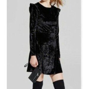 MOSSIMO Women’s Jr Black Crushed Velvet Dress Sz XXL Whimsigoth Grunge Ruffles