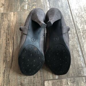 Mossimo faux suede scrunched shootie bootie open toe heels size 6. Gently used. Fabric upper, 3.75” heel.