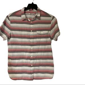 MOSSIMO, men’s button down shirt, medium, short sleeves,one pocket, gray, pink and white. 100% cotton, machine washable. Please check approximate measurements in pictures before purchasing. Don’t forget to bundle and save. Choose any three items $20 or less, and get all three for $25.
