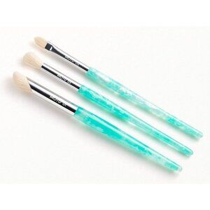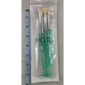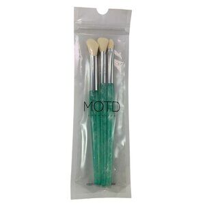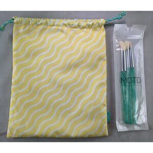 MOTD Cosmetics 3-Piece Makeup Brush Set Aqua Handles BONUS Yellow Wave Pouch