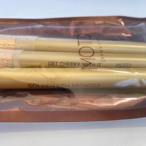 Gold Goddess Brush Set includes 3 face brushes to contour, highlight, and apply all over bronzer for a sunkissed glowing makeup look. Supermodel Sculpt Contour & Highlight features dome shaped bristles to ensure controlled application for a perfect on-trend sculpt and glow. Get Cheeky With It features an angled brush head that effortlessly applies and blends out pigment, achieving a beautiful pop of blush or chiseled cheekbones. Golden Gem Bronzer is designed with tapered flexible bristles that allow for precise application to the face for a soft sunkissed glow.
