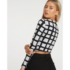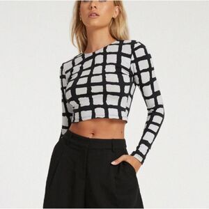 Inject some print into your wardrobe with the Bonnie top. It features a cropped fit, long sleeves, and a crew neckline in a monochrome abstract print.