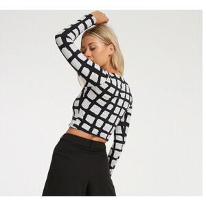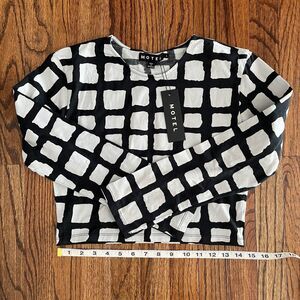 MOTEL Bonnie Crop Top in Mono Painted Check Black NEW Large