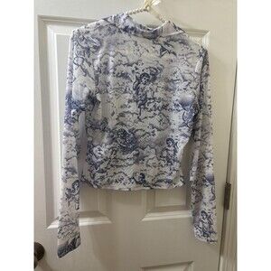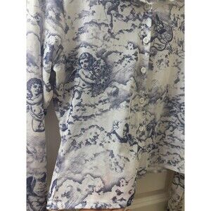 MOTEL KELLY SHIRT 20'S CHERUB WHITE BLUE long sleeve CROP top blouse S