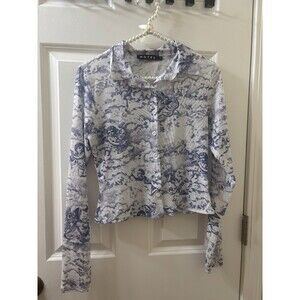 PRINCESS POLLY MOTEL KELLY SHIRT 20'S CHERUB WHITE BLUE long sleeve CROP top blouse S