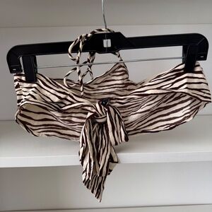 Channel your inner tiger queen! Our Maudy crop top features adjustable halterneck straps, a tie-up back, and an animal print. Size medium. Great preloved condition. Bought from Princess Polly
