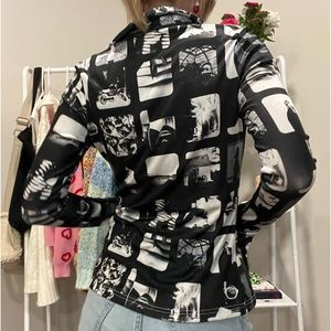 Motel Rocks Blouse Size: XS Black/White with flare sleeves (only worn once !!)