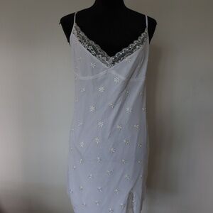 Elegant and classy in our Daisy dress, the ultimate festival piece you need! Featuring a bodycon mini fit with lace trim and sassy split in mesh floral white print. Team up with chucky white sneakers and a cute side bag.