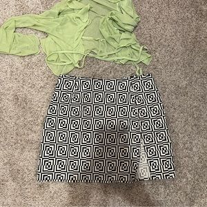 This skirt is so flattering and unique! Can be dressed up or down! Comes with green top!