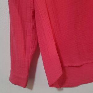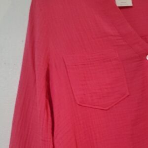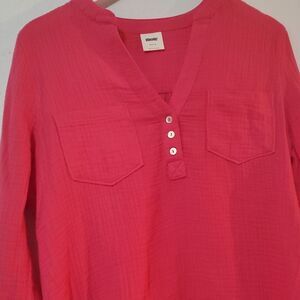 Elevate your wardrobe with this chic pink blouse. Featuring a stylish V-neck and button accents, it's perfect for any occasion.