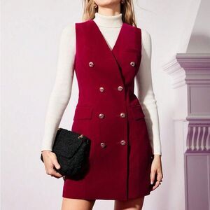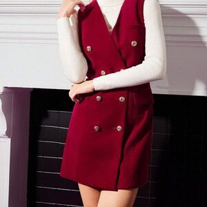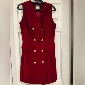 MOTF SLEEVELESS VELVET BLAZER DRESS W/OUT T Burgundy Double-Breasted Dress SZ M