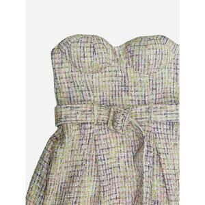 MOTF Strapless Tweed Dress Small Bustier Top Belted Pastel Chic
