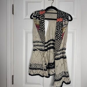 MOTH ANTHROPOLOGIE Draw The Eye Patchwork Mixed Media Vest Size S/M Ramie