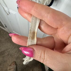 Good preowned condition (one small stain on the tie, and one small flaw shown in photos)
