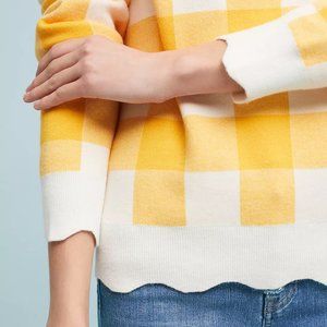 MOTH / ANTHROPOLOGIE Yellow Classic Check Sweater with Scalloped Hem
