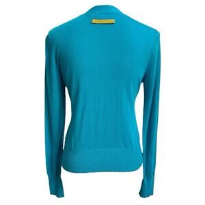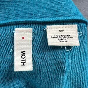 MOTH Anthropologie Cardigan Asymmetric Neck Long Slv Turquoise Blue Pockets Sz S