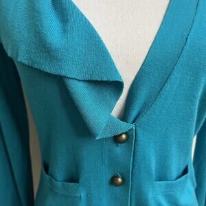 MOTH Anthropologie Cardigan Asymmetric Neck Long Slv Turquoise Blue Pockets