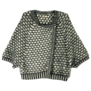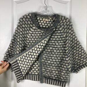 MOTH Anthropologie Cardigan Sweater Cape M Angora Wool Grey Fluffy Snap”Empyreal