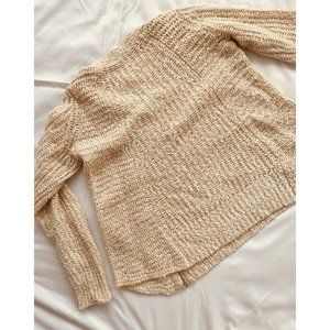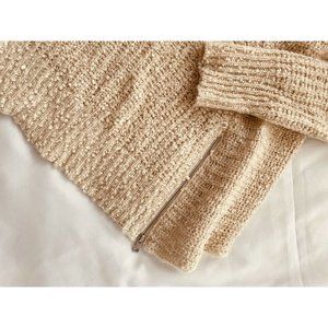 MOTH Anthropologie Sweater Size Small Cream Popcorn Knit V Neck Side Zip
