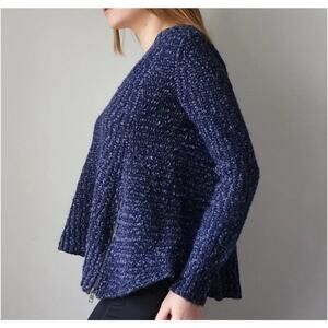 MOTH Anthropologie Sweater Women's Medium Navy Blue Cable Knit Wool Alpaca Blend- Navy blue colorway v neck relaxed fit pullover side zip textured sweater