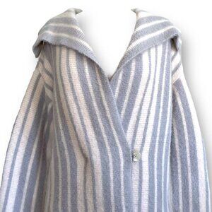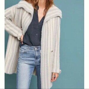 MOTH Anthropologie Womens Sweater Coat Sz S Gray White Stripe Oversized Coatigan