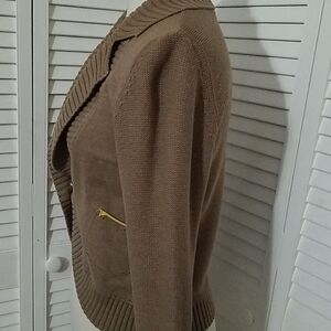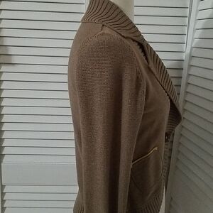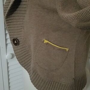 GORGEOUS MOTH FOR ANTHROPOLOGIE SWEATER. TAUPE WITH YELLOW ACCENTS. LARGE WOODEN BUTTON, 2 BUTTONHOLES SO YOU CAN MAKE IT LOOSE OR TIGHTER. EXCELLENT CONDITION.