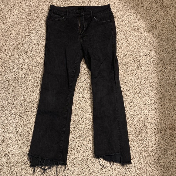 Chic black flare jeans with a frayed hem. Size 26. Good condition.