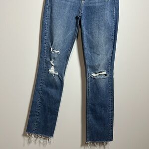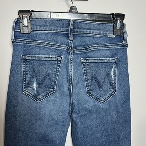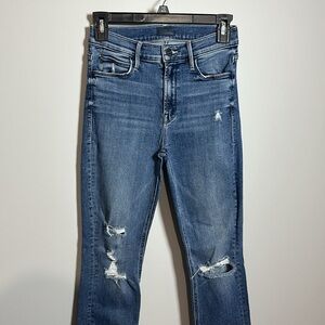 MOTHER Ankle Cropped Distressed Blue Jeans