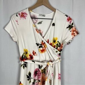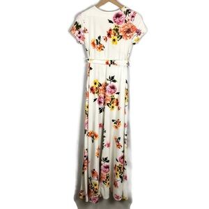 MOTHER BEE Maternity Cap Sleeve V-Neck Faux Wrap Maxi Dress White with Bright Floral Print Size Large