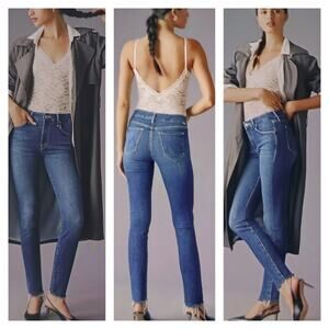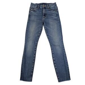 Stylish blue jeans. Ankle length. Cropped design. Perfect for any occasion.