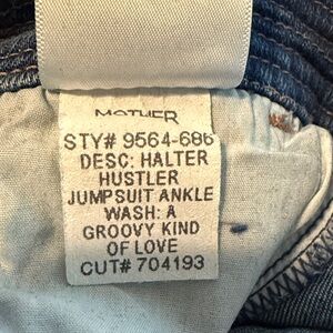 Chic blue denim jumpsuit with a halter neck design. Perfect for casual outings.