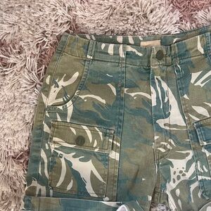 Stylish and comfortable camouflage green women's shorts. Perfect for casual outings and outdoor activities.