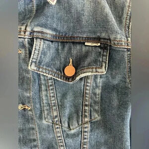 MOTHER DENIM THE BIG SHORTY DENIM JACKET IN LOVE BOMBS WOMEN’S SIZE XS