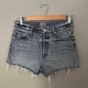 MOTHER DENIM The Tomcat Kick Fray Short Shadows in The Grass Gray Size 25