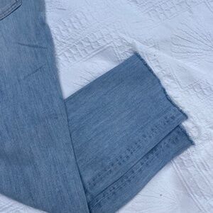 High waist lace up details, frayed ends, slim and stretchy — super flattering. Small wear on one of the back pockets. Worn a few times