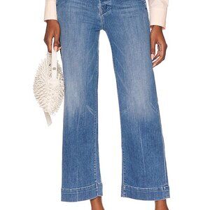 MOTHER Denim The Cinch Greaser Ankle High Rise Wide Leg Sorry I'm Staring SZ 30 Boho Coastal. Wide-leg jeans with a high rise, button fly, cinched waist and an ankle-length inseam with a thick hem. Cut from denim with a touch of stretch, Sorry I'm Staring is a mid-blue wash with fading and whiskering.