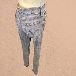 MOTHER Denim ‘The Looker’ Ankle Fray Skinny Jeans in “All Nighter” Gray Size 26