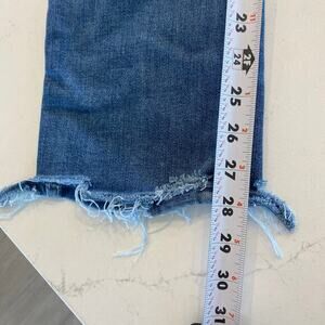 In good used condition. No stains. Destroyed raw cut frayed hem. Mid rise. 28" inseam. Color/ Wash: Wild. Zipper fly with a button. Women's size 27.