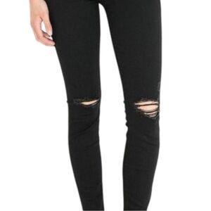 Elevate your style with these sleek black high-waisted distressed jeans. Perfect for any casual occasion, they offer a flattering fit and timeless look.