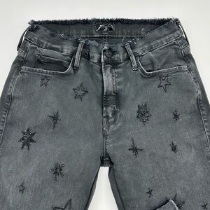 MOTHER Double Fray Charmer Written in the Star Embroidered Jeans Size 27