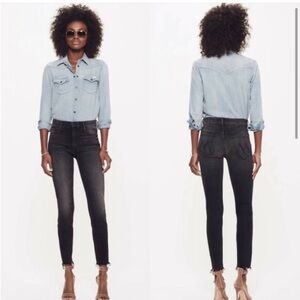 MOTHER HIGH WAISTED LOOKER ANKLE FRAY IN NIGHT HAWK FADED ACID WASHED LOOK