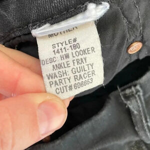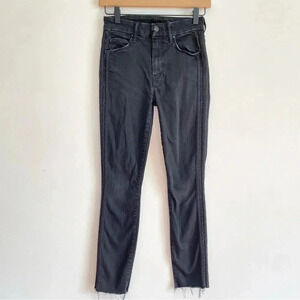 MOTHER HW Looker Ankle Fray Guilty Party Racer Black Skinny Jeans Rae Edge Pant