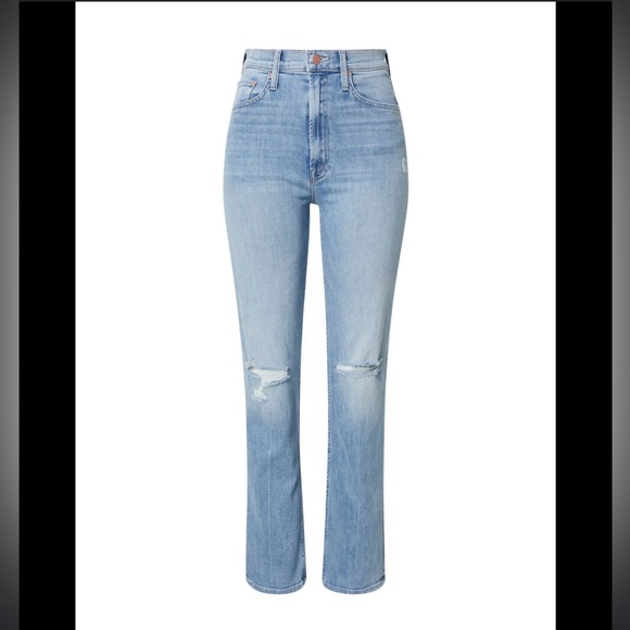 Experience the perfect blend of style and comfort with MOTHER's high rise blue jeans. These jeans feature a trendy distressed look with rips at the knees, adding a touch of edge to your outfit. The high-waisted design ensures a flattering fit, making them a versatile addition to your wardrobe.