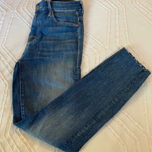 High waisted jeans, fitted with a frayed hem. With a generous stretch for extra comfort, these jeans feel like a second skin in their best selling wash.