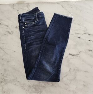 MOTHER High Waisted Looker Ankle Fray High Rise Dark Blue Skinny Jeans 26