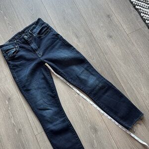 MOTHER High Waisted Looker Ankle Fray Jean Last Call Size 25 Dark Denim