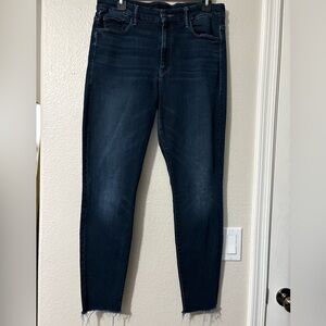 MOTHER High Waisted Looker Ankle Fray in Last Call Wash Dark Blue Skinny. Size32