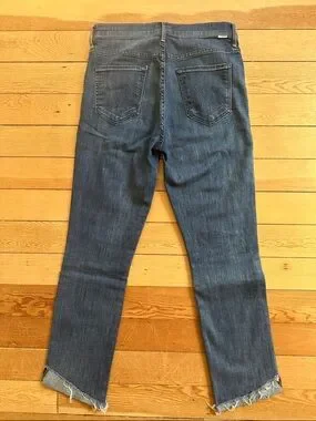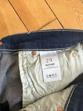 Mother High Waisted Rascal Slit Flip in Double Shot Espresso. Size 29. I would say that these run at least one size too small. I am a 28 typically and these are snug on me. In excellent condition. Non smoking home. The slits are sewn in so you cannot unfold them.